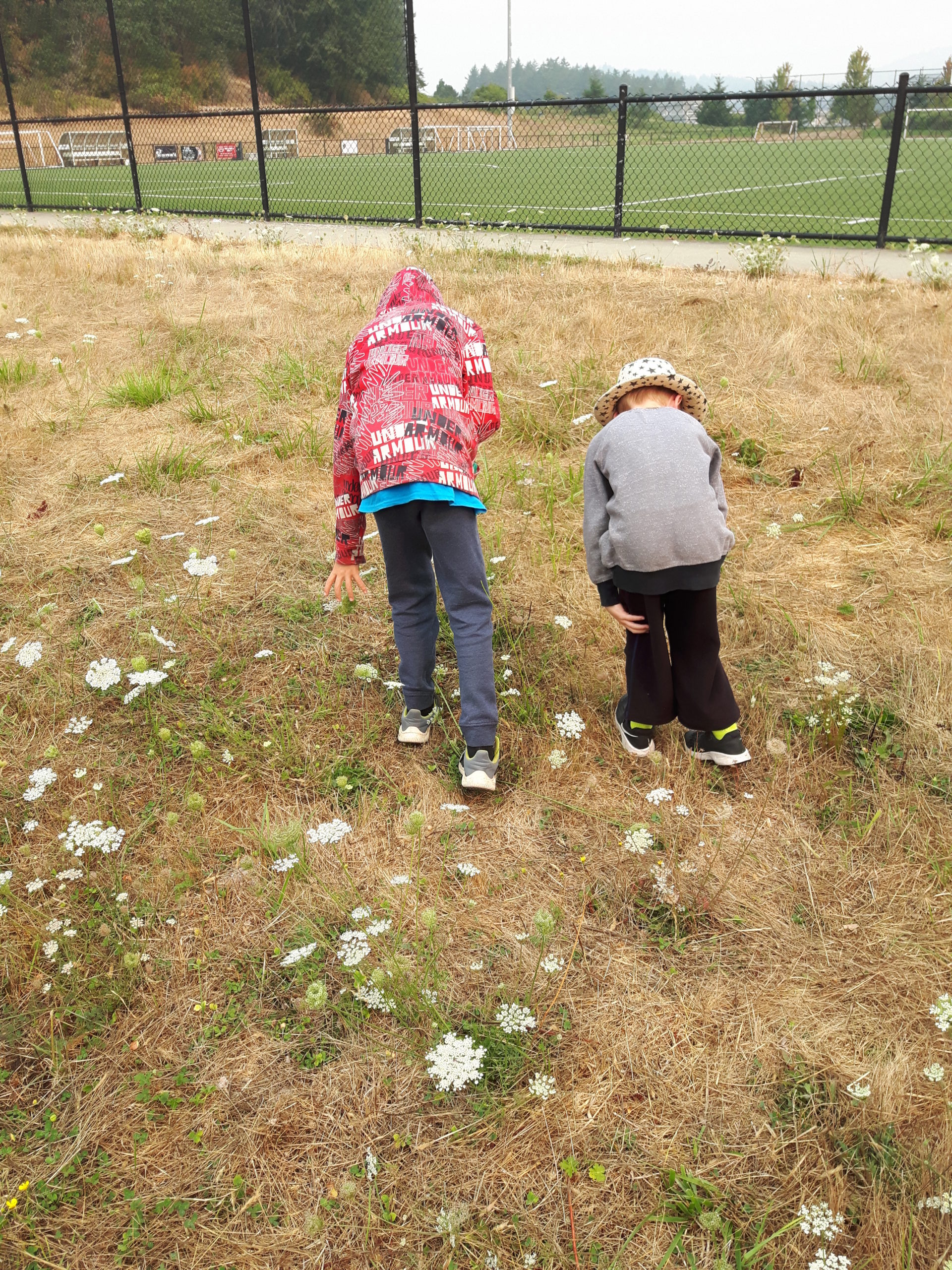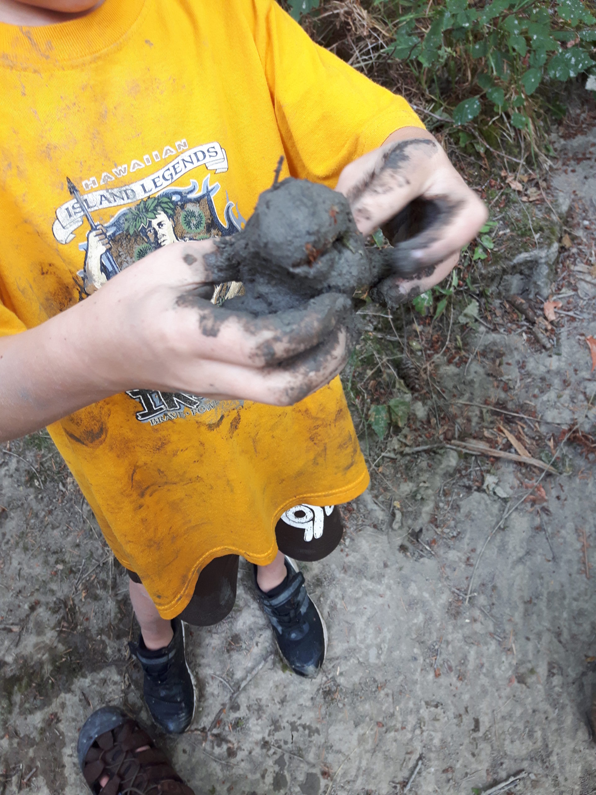 The quickest way to a child’s heart is through their belly (likely true for adults as well, at least for me). The July weeks were blessed with a wide variety of berries to forage for. We tasted native Trailing Blackberries (sweet), Thimbleberries (seedy but delicious, and a first for most kids), Saskatoon Berries (good but seedy), one random Salmonberry (wasn’t me), Indian Plums (gross), Oregon Grape (tangy), and Huckleberries (first spotted by a veteran Forest School camper). Another memorable moment came when some of the kids were picking Oregon Grapes along one of the concrete paths and a Tech Park worker, out for a lunch break stroll no doubt, stopped, looked a bit awkward and then said “I don’t think you can eat those.” One of the kids turned around confidently and said “this is Oregon Grape, they’re edible.” In my mind I said “its working!” with a huge smile.