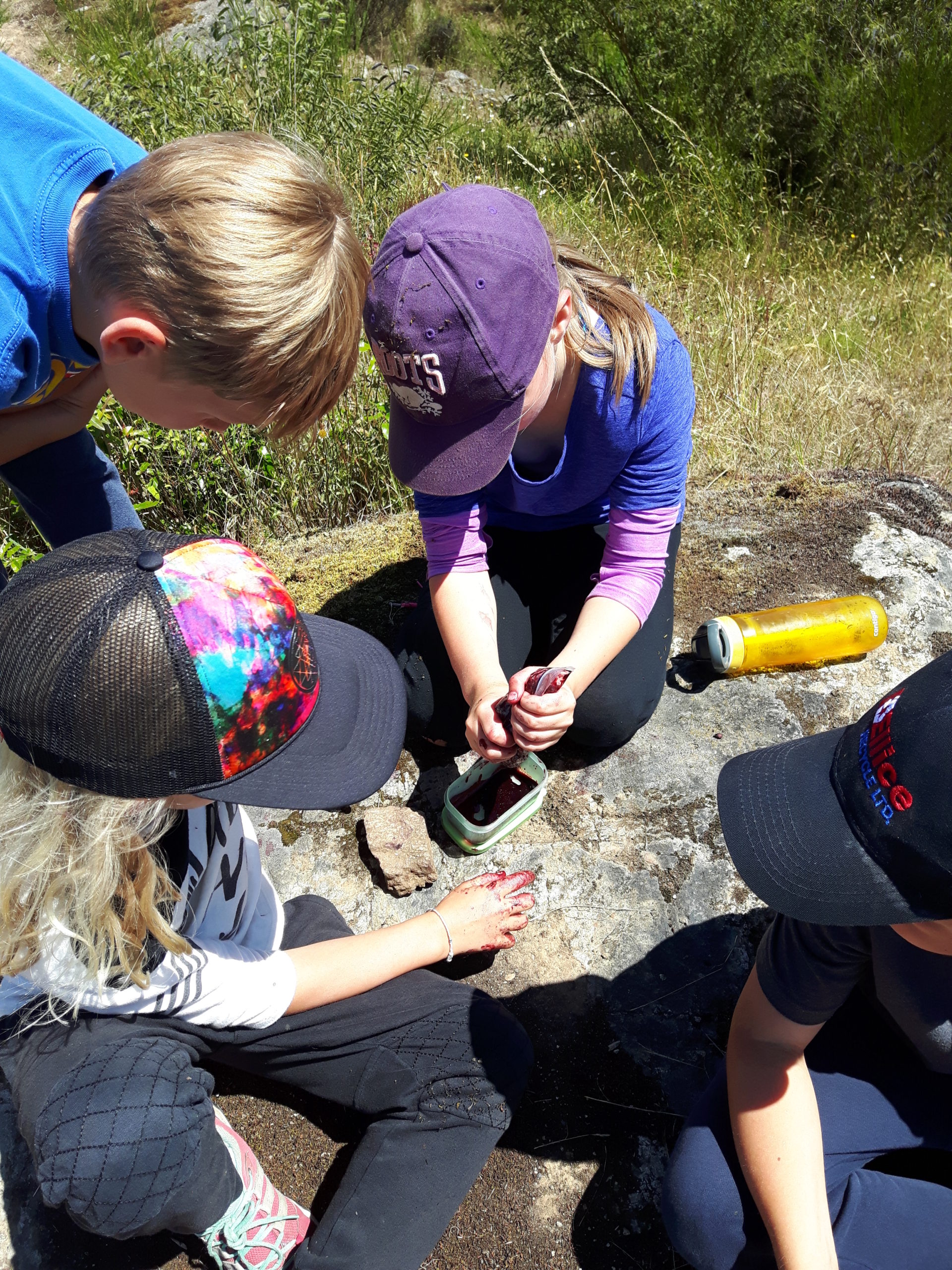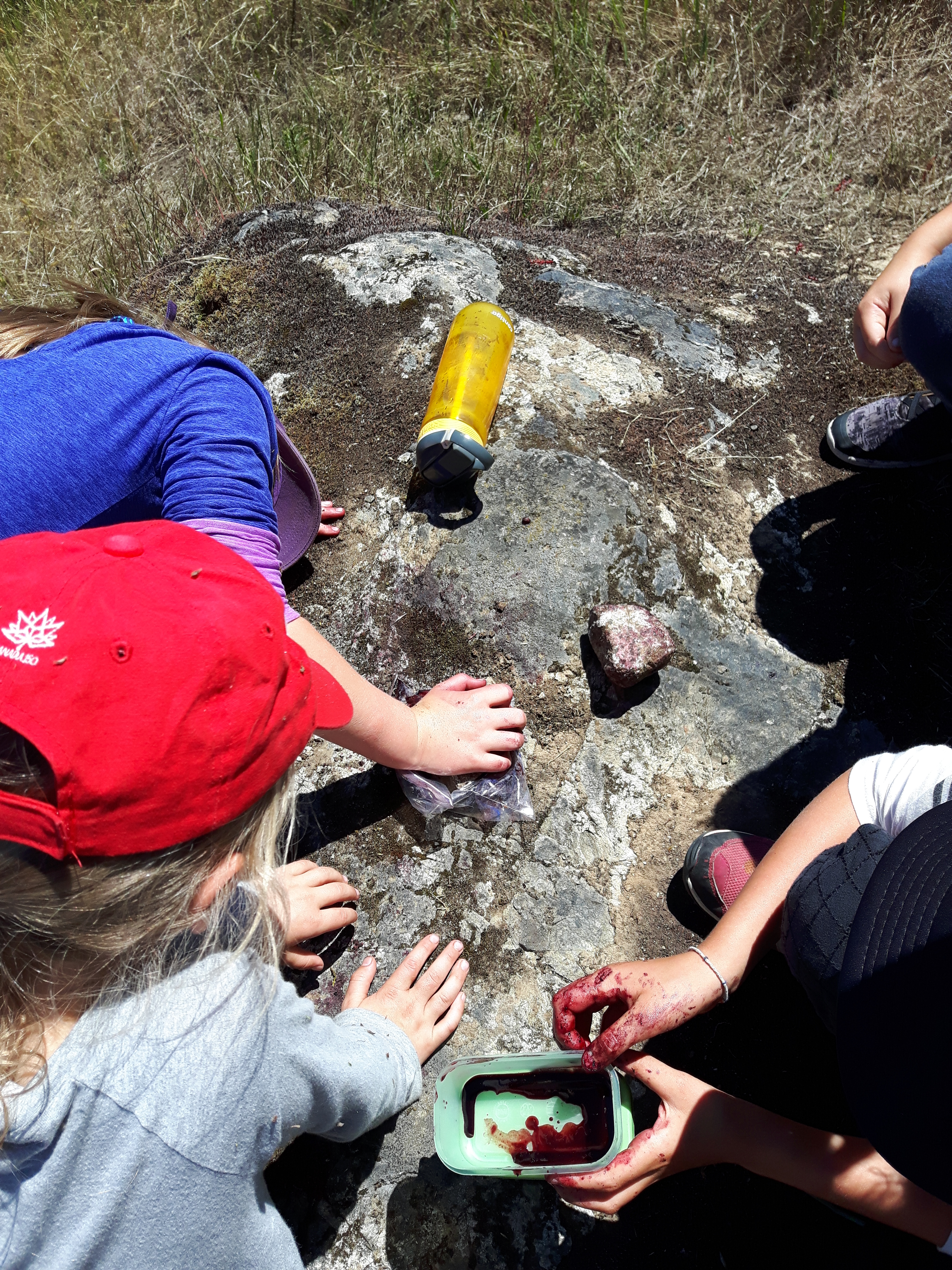 What better use could there be for a yucky Indian Plum, a tart Oregon Grape or an unripe Blackberry than… paint! What a great experience watching them work together to figure out how to filter out the seeds and add water to get the right consistency they wanted.