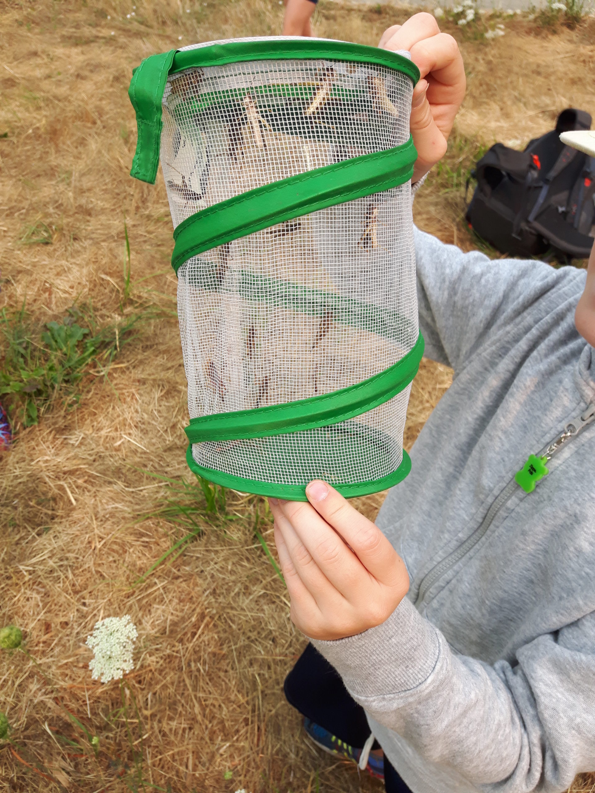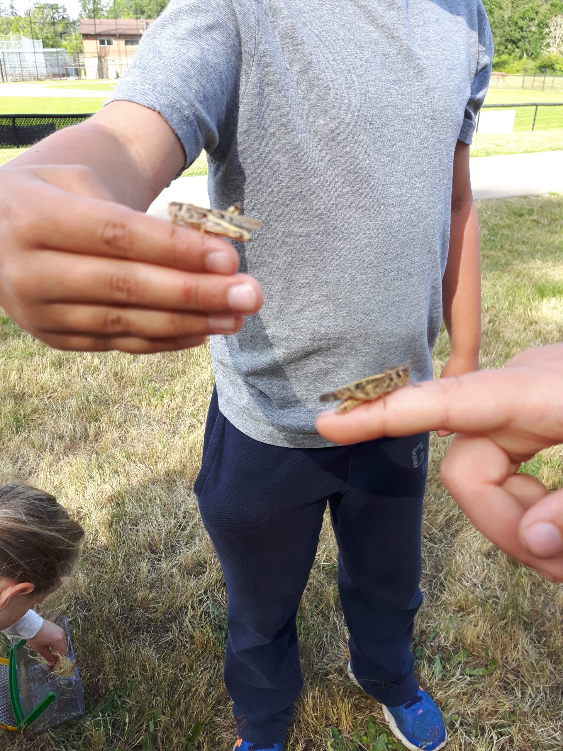 Hunting and capturing critters for observation started with the grasshoppers. On day one we caught three grasshoppers, which the kids named and observed over the course of the morning before we released them back where we found them. Later in the season, there were days when there were so many of them in the critter cage you would loose count of them.