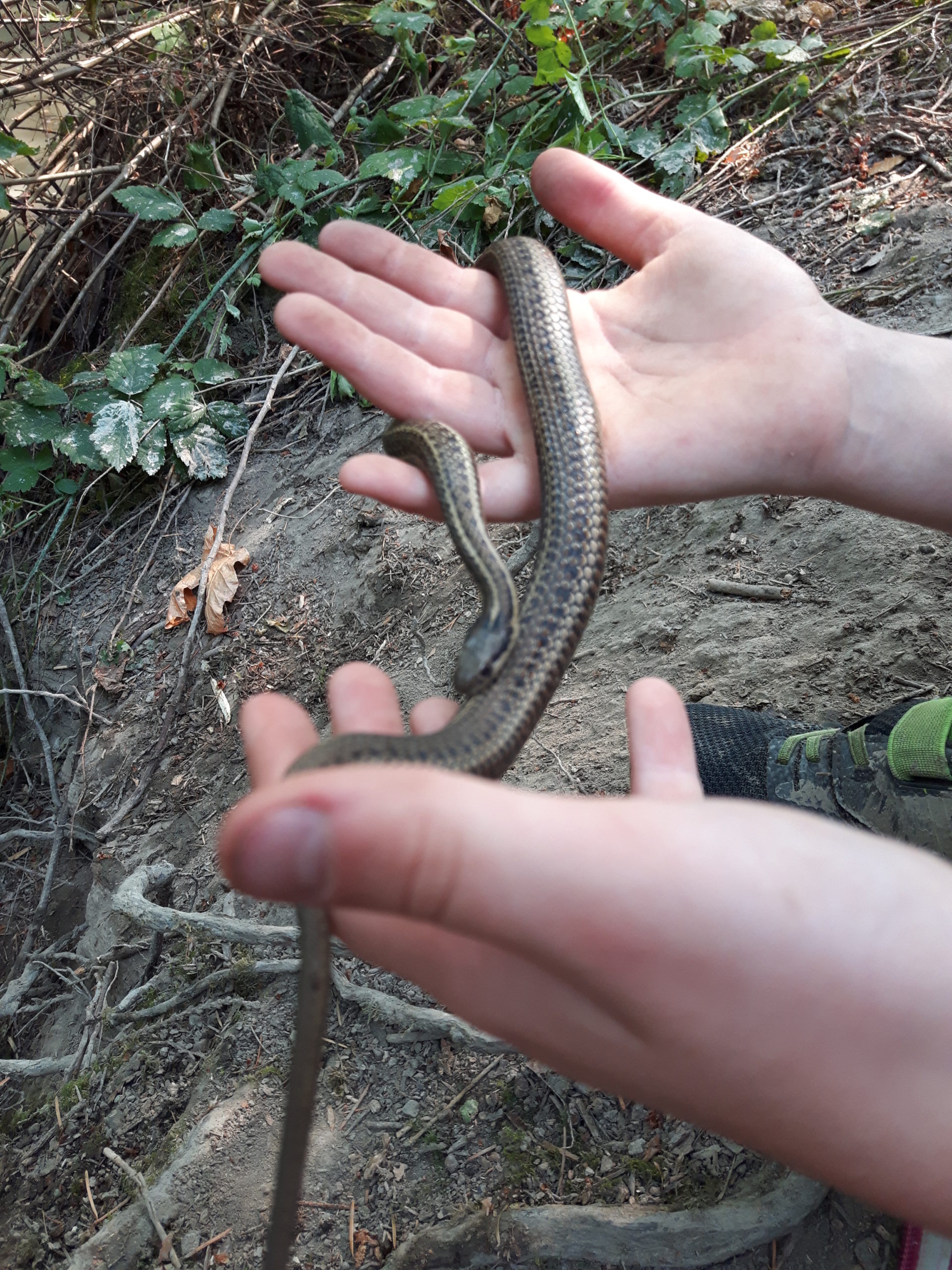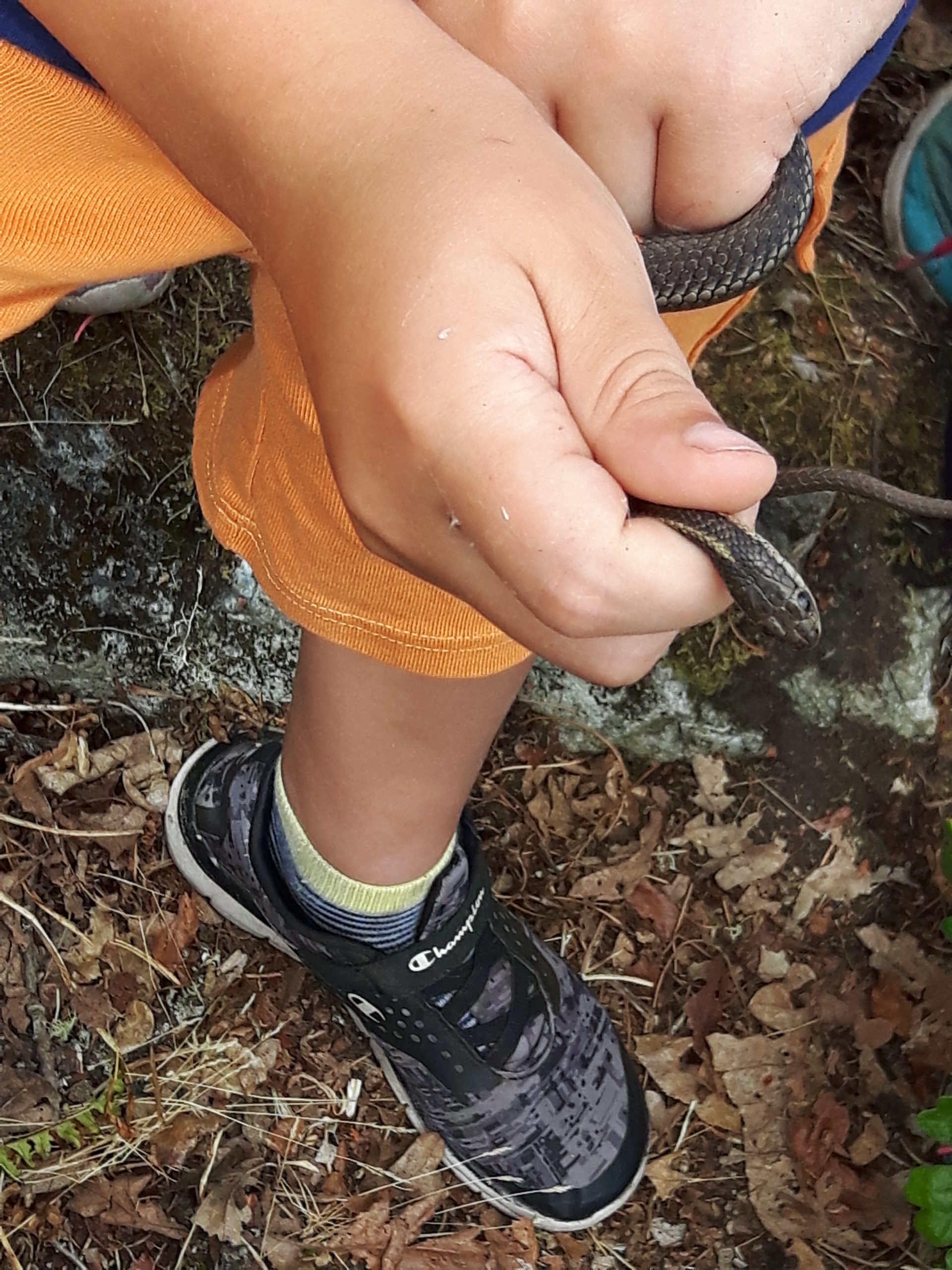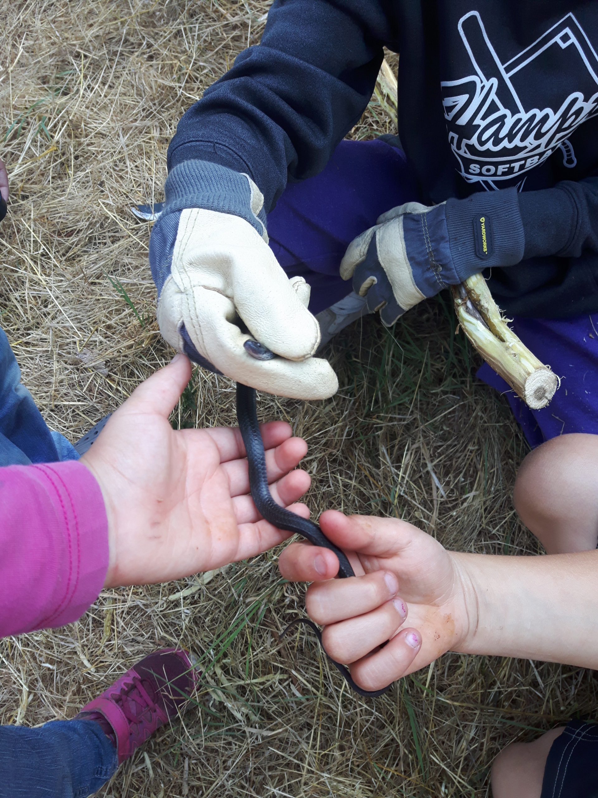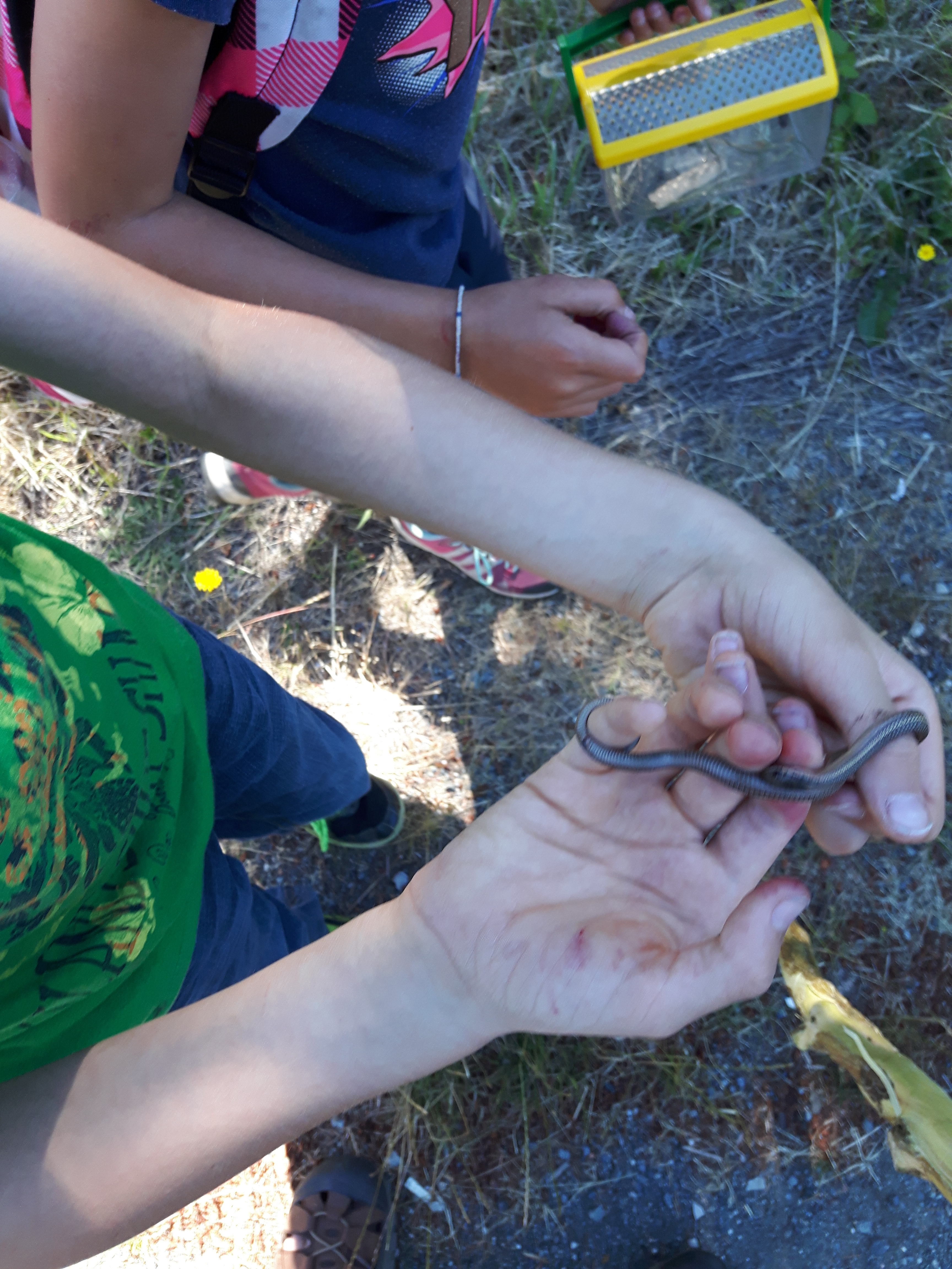 The first snake catch of the summer was epic. In a great display of team work and patience, completely unprompted by me, the group from the first week stalked and waited out a snake hiding in a rock up the hill. They spent a good ten minutes all perched around the hole, whispering to each other to be quiet. Then, one pounced and grabbed the tail and another grabbed the head (so as not to get bitten of course) and it was out; the first snake of the season. That heart thumping, nail biting chase opened the flood gates for snake catching. The record was five in a day. Once we learned where they preferred to live and the time of day they were most active, it was all but certain that we would catch at least one a day to observe and release.